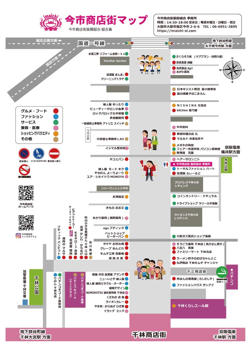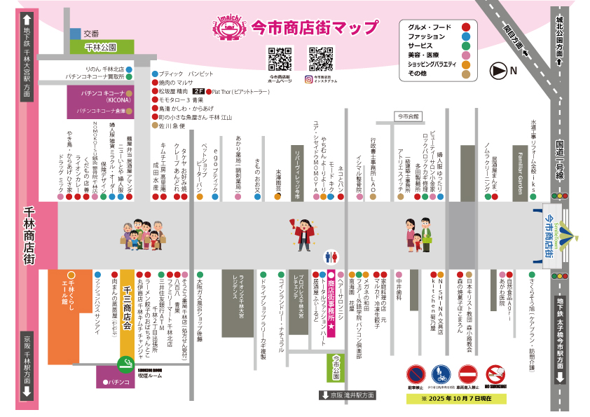 今市商店街は、10:00~11:00 歩行者優先道路となっています。なるべく自転車は降りて通行していただきますようお願いいたします。