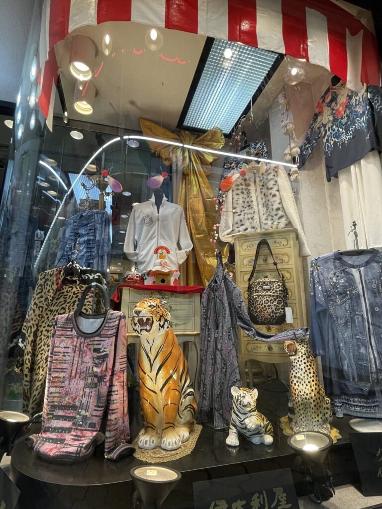 伊太利屋ならではの多彩な色を使い、アニマル柄から海柄、花柄、幾何学模様と独創的な生地で着る人の個性をひきたてる洋服です。